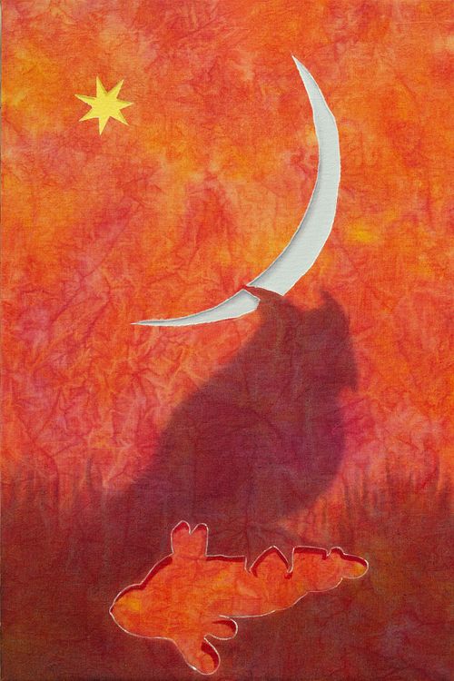 Owl & Crescent Moon, oil on canvas, 36 x 24 in, 2023