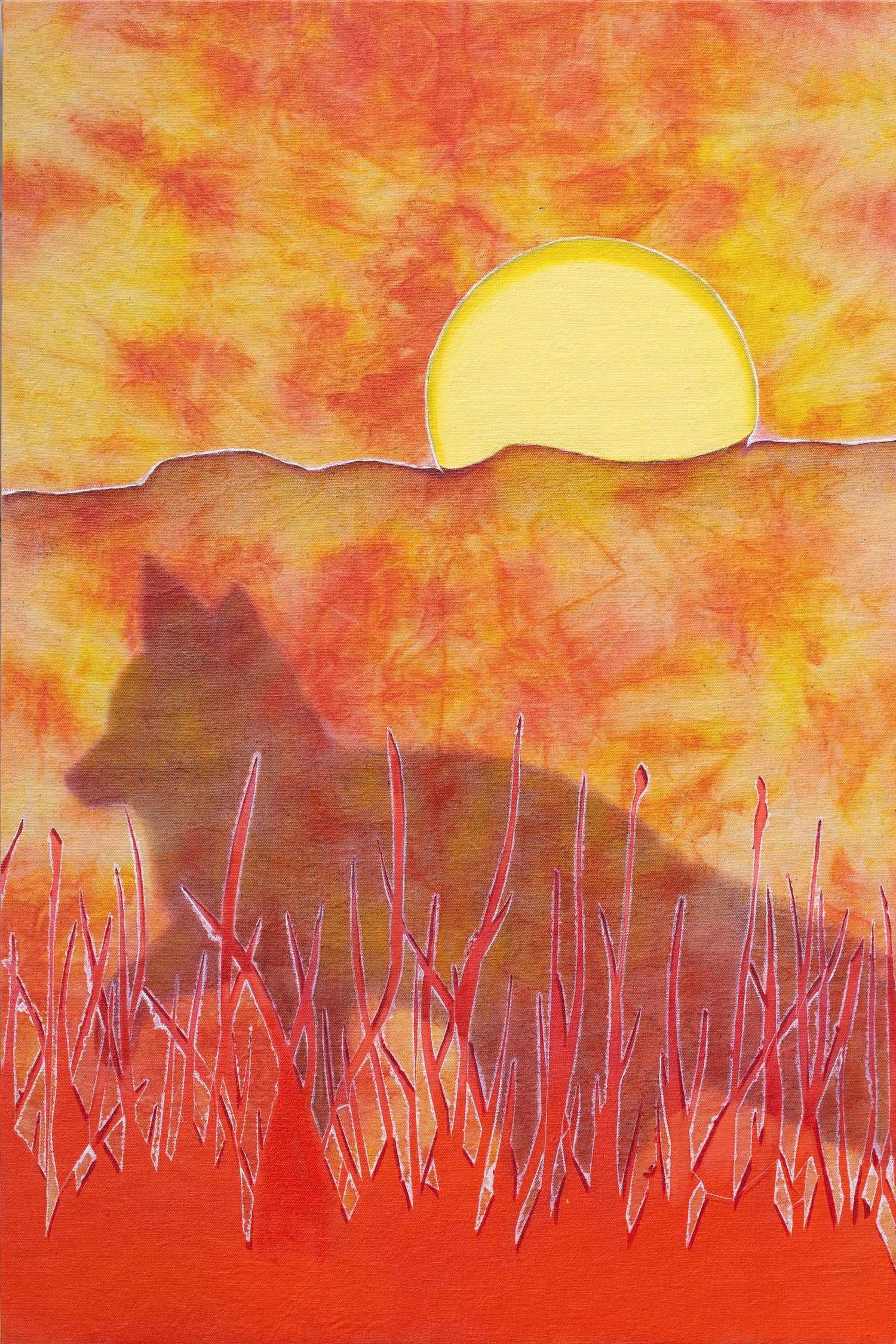 Fox & Sunset, oil on canvas, 36 x 24 in, 2023