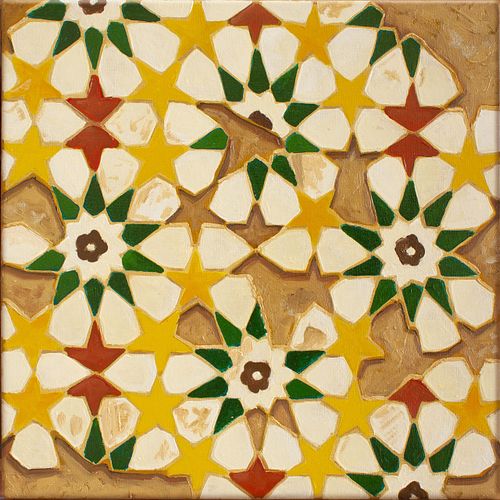 Tile Composition With Yellow Stars, oil on canvas, 12x12 in, 2023