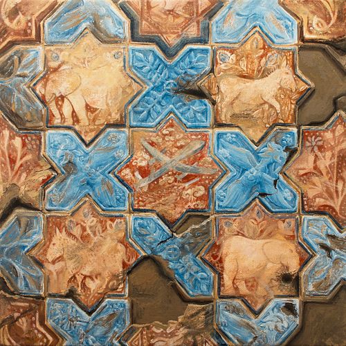 Mud Brick Tile Composition, oil on canvas, 12x12 in, 2023