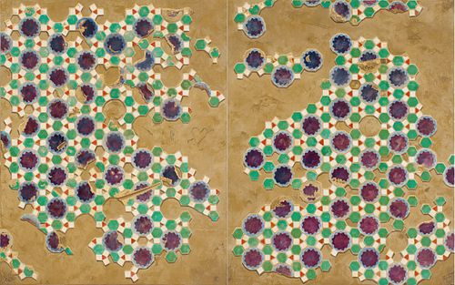 Tile Composition in Green and Blue Diptych , oil on canvas, 58x92 in, 2023